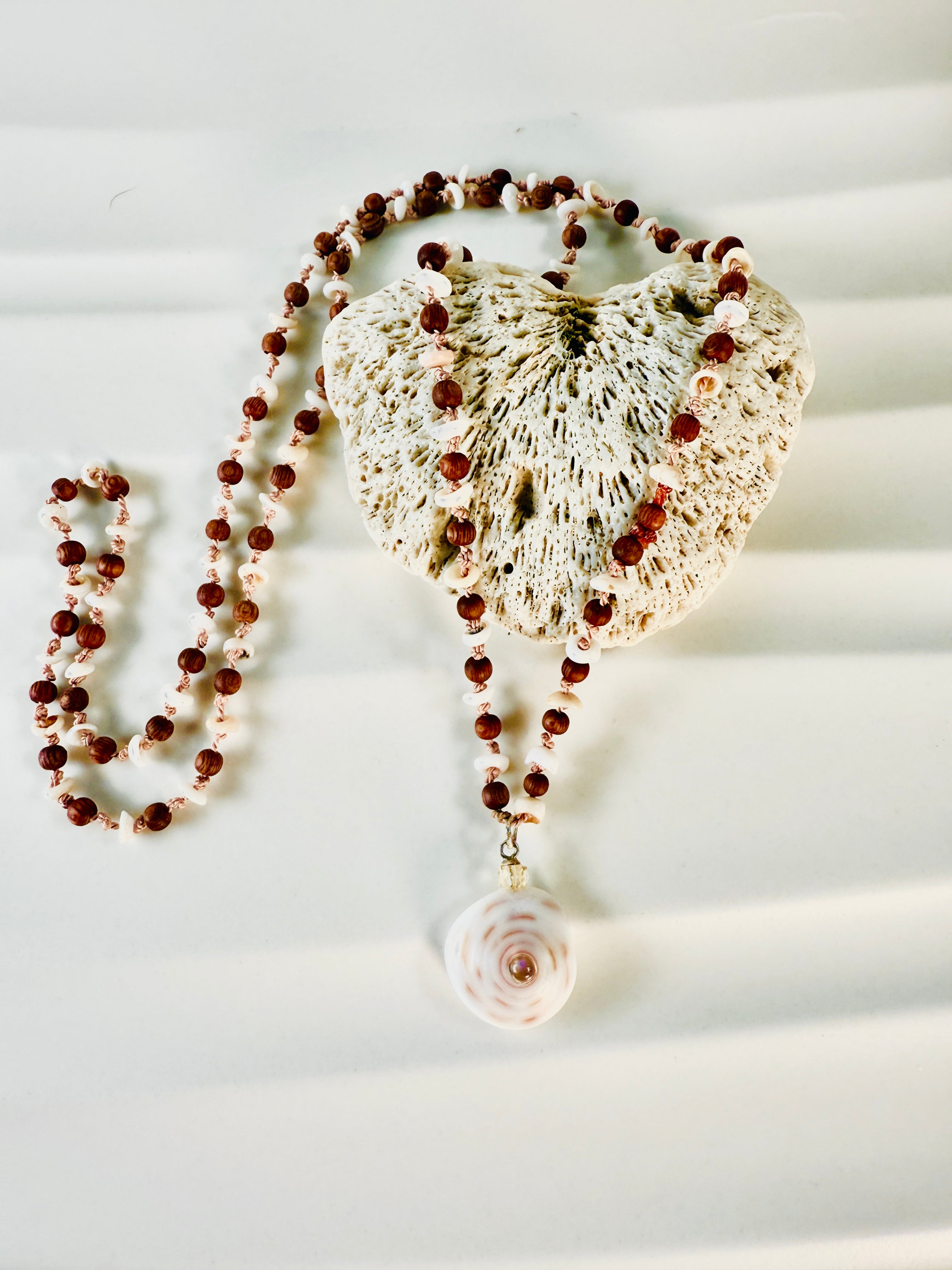 Mālā- A string of beads, traditionally 108, is considered sacred in many traditions. I focus on using organic beads, shells and other objects as suggested by purists. Used for repetitions of a mantra or prayer during meditative practices. "Mālā" originates from Sanskrit and translates to "meditative garland" or "prayer beads". Used in various spiritual traditions, Hinduism and Buddhism.